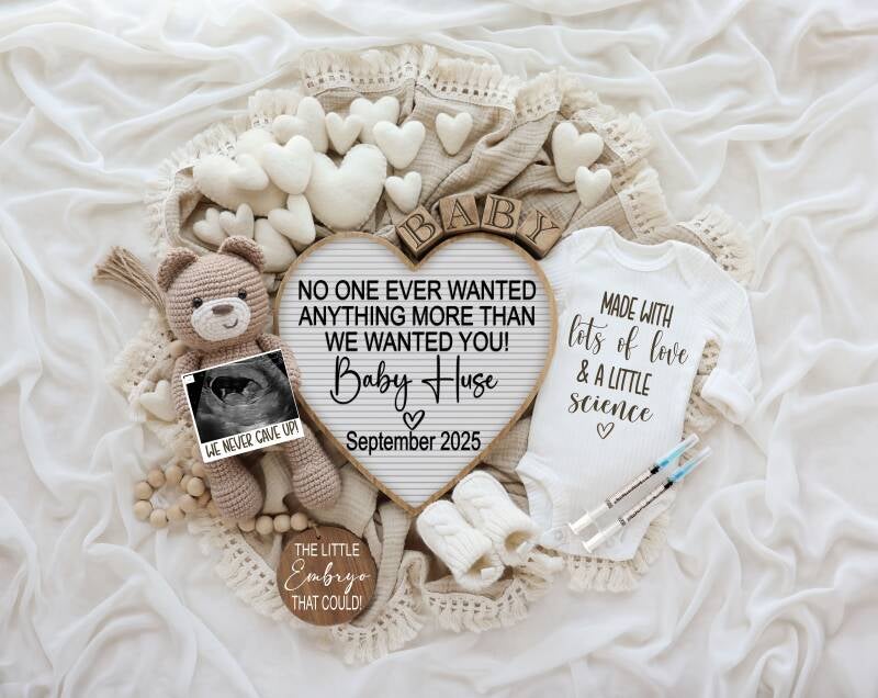 What a journey we've had! After 3 years, 2 miscarriages, 1 ectopic pregnancy, 2 lost embryos, 1 failed IVF transfer, and 91 progesterone shots later, we have a baby! I'm still in disbelief, but the unbelievable nausea, acid reflux, migraines, and lack of sleep remind me daily of our success.